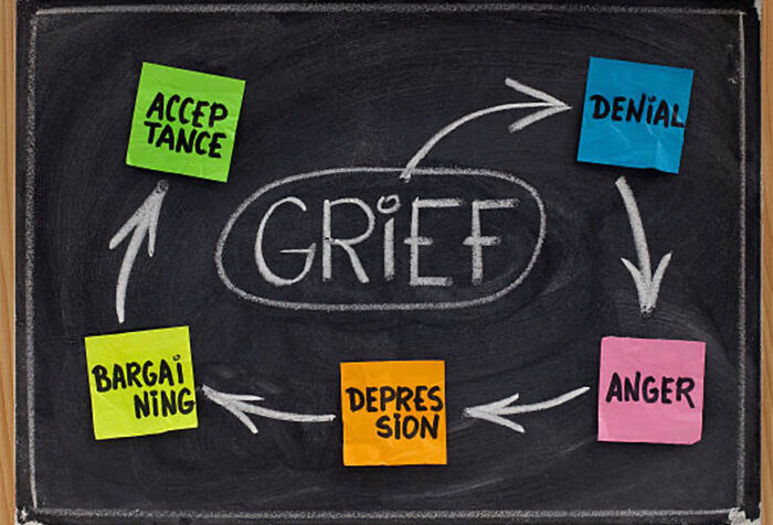 Ο επίμονος θρήνος, οδηγεί σε μια περίοδο πένθους η οποία αποτελείται από πέντε βασικά στάδια . Ο άνθρωπος μένει σε κάθε ένα από αυτά, όσο εκείνος νιώθει και πολλές φορές μεταπηδά από ένα στάδιο σε κάποιο άλλο χωρίς απαραίτητα να κρατάει την σειρά τους.